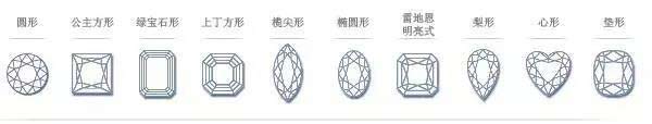 钻石根据不同的切工手法会将钻石切成不同的形状,目前市面上最受欢迎的钻石有圆形钻石、公主方形钻石,马眼形钻石、橄榄形钻石、水滴形钻石、祖母绿形钻石等,我们一般将圆形以外形状的钻石统称异形钻石。