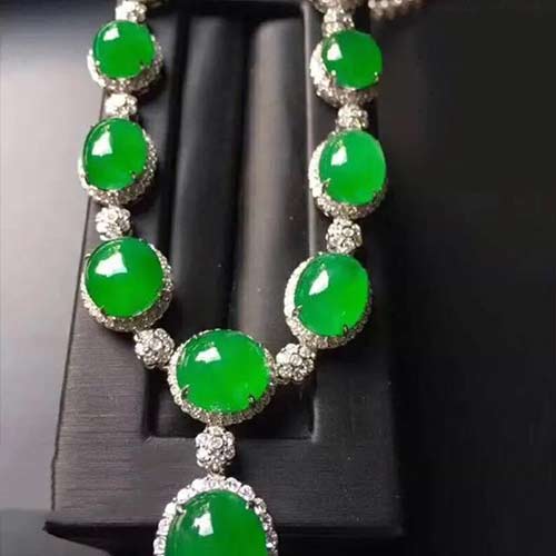 翡翠项链款式和色彩均有不同,喜爱翡翠项链的你,可根据自身的年龄、气质以及所到场合的不同,而进行搭配。